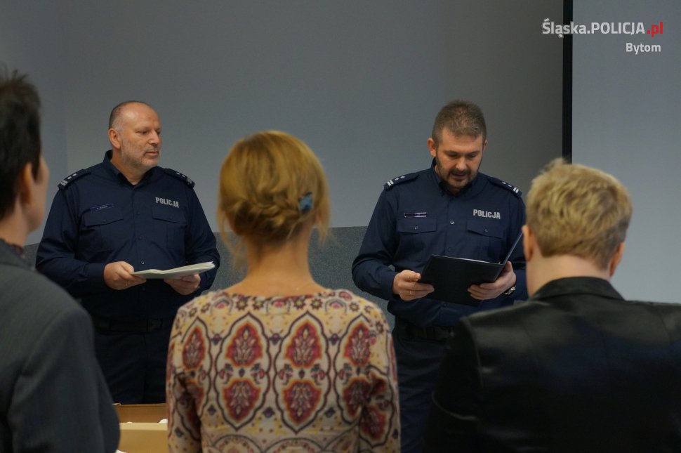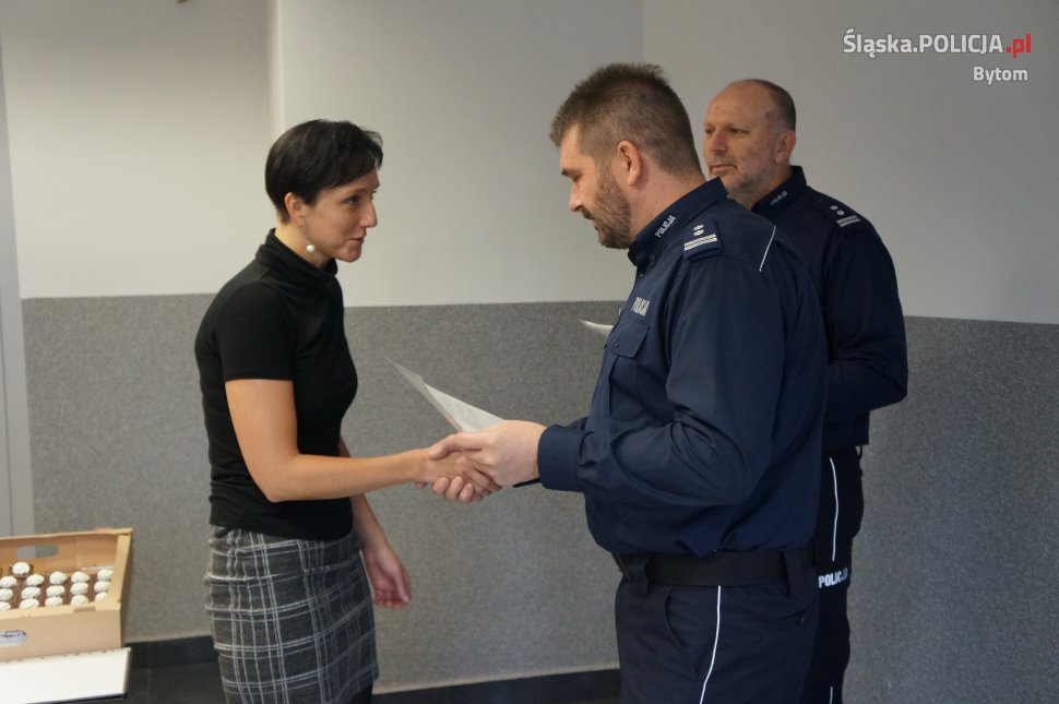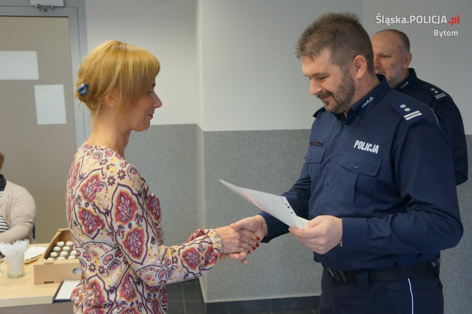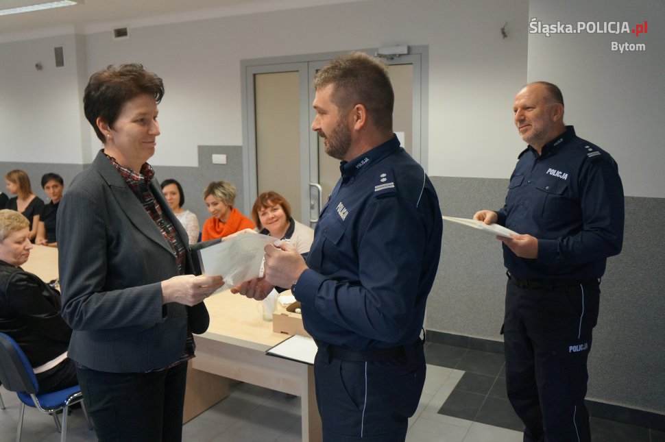 W bytomskiej komendzie odbyło się uroczyste wręczenie okolicznościowych adresów. Szef bytomskich policjantów mł. insp. Karol Fajer podziękował pracownikom cywilnym za trud i wysiłek, jaki wkładają w wykonywanie swoich obowiązków. Spotkanie odbyło się z okazji święta służby cywilnej, które przypada 11 listopada.