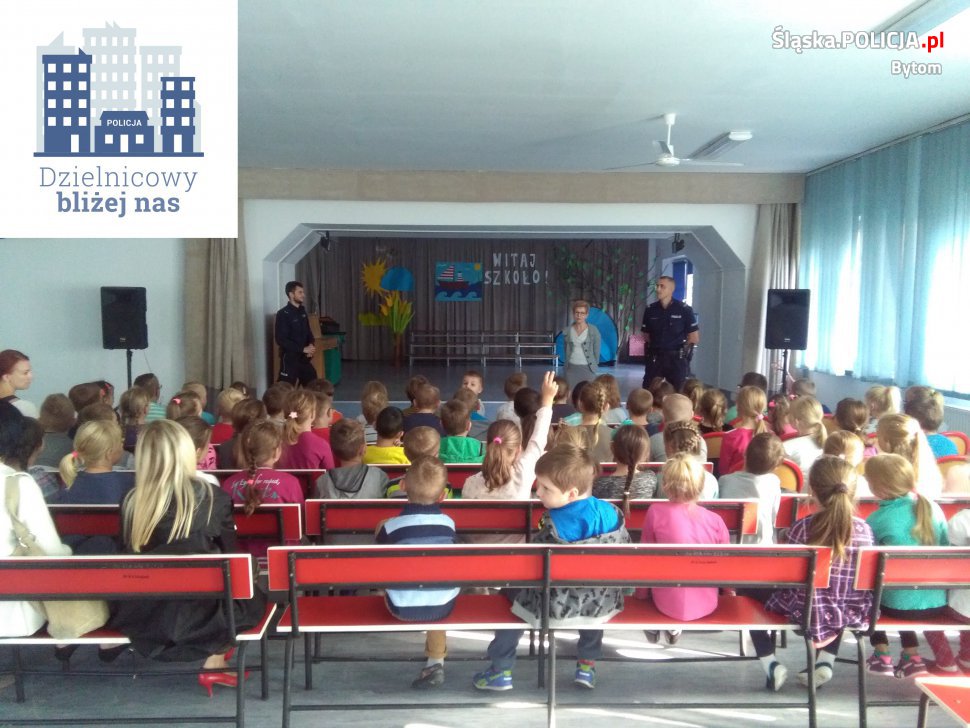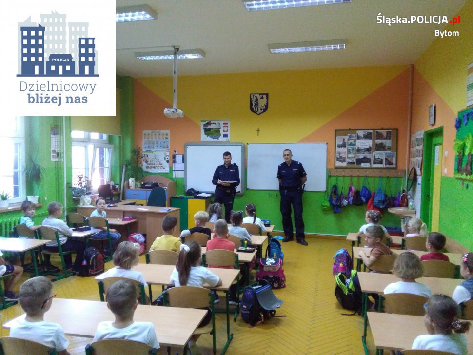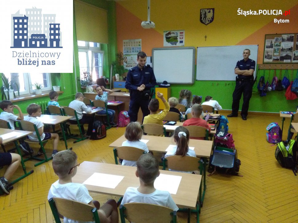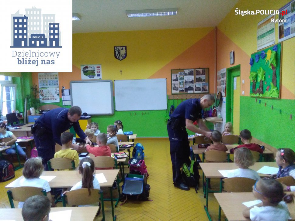 Dzielnicowi z komisariatu II odwiedzili najmłodszych w szkołach podstawowych przy ulicy Łużyckiej, Siemiradzkiego oraz Orląt Lwowskich. W czasie spotkania mundurowi uczyli dzieci, jak unikać zagrożeń i bezpiecznie poruszać się po drodze. Omówiono temat bezpieczeństwa dzieci podczas zabaw na podwórku, przejazdu samochodem i kontaktach z obcymi. Najmłodsi z dużym zaangażowaniem uczestniczyli w prelekcji. Chętnie odpowiadali na pytania i z wielkim zainteresowaniem sami je zadawali.