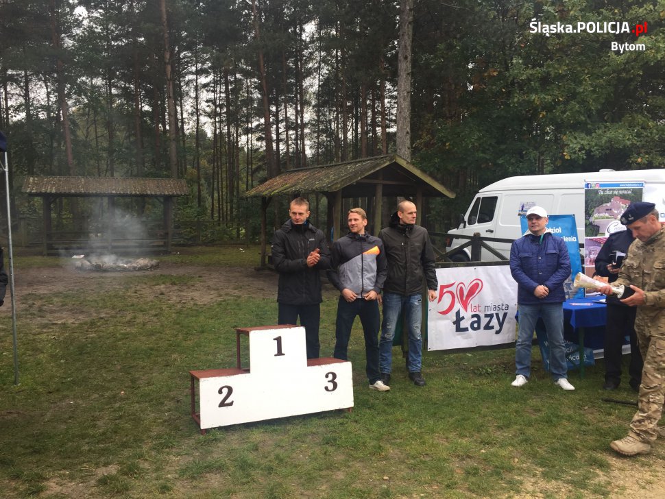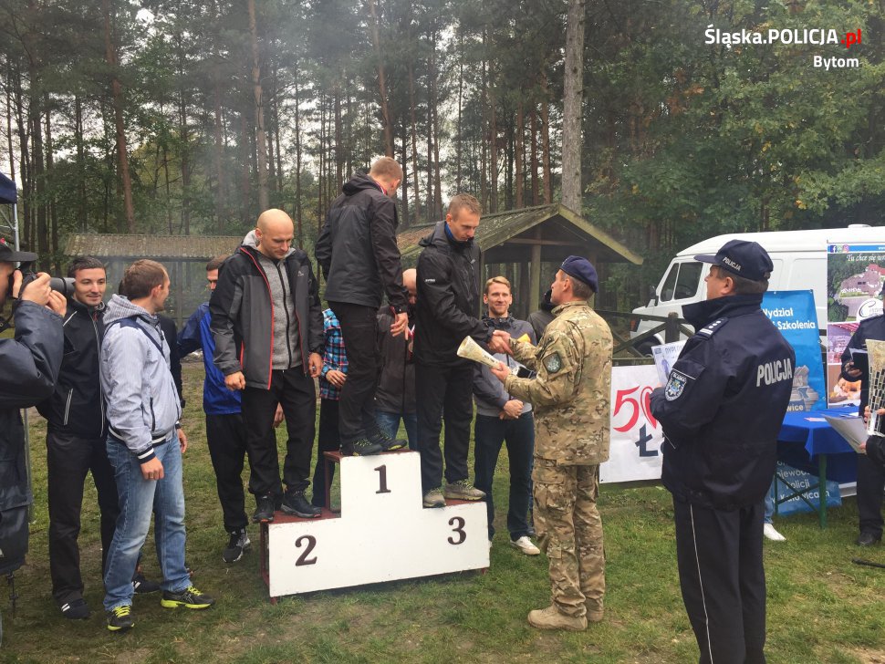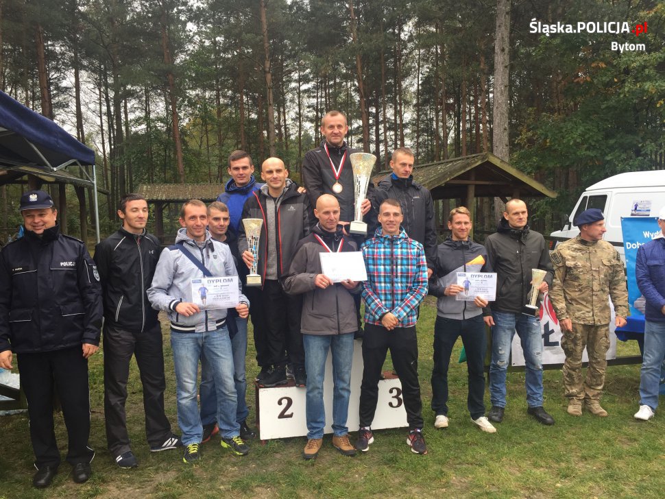 Na podium stanęli bytomscy policjanci: sierżant sztabowy Daniel Dyduk, starszy sierżant Paweł Szlufik i starszy sierżant Krzysztof Sagan, którzy w klasyfikacji drużynowej wywalczyli trzecie miejsce.