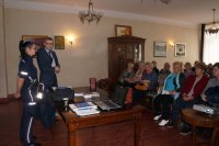 Osoby starsze, mieszkające samotnie niezwykle często znajdują się na „celowniku” oszustów. Sytuacje zaaranżowane przez przestępców, którzy chcą szybko wyłudzić pieniądze, mają bardzo różne scenariusze: od popularnej metody "na wnuczka", po bardziej wyrafinowane oszustwa z udziałem rzekomych funkcjonariuszy, pracowników energetyki lub wodociągów. Policjanci przedstawili sytuacje, w jakich osoby starsze najczęściej padają ofiarami oszustów. Przestrzegano przed zbytnią ufnością wobec obcych. Ponadto mundurowi poruszyli temat bezpiecznego poruszania się po drogach. Wyczulono seniorów, aby przestrzegali przepisów ruchu drogowego i korzystali z oznakowanych przejść. Zachęcano do noszenia elementów odblaskowych szczególnie po zmroku. Spotkanie było także okazją do omówienia funkcjonowania aplikacji „Krajowa Mapa Zagrożeń Bezpieczeństwa” oraz „Moja Komenda”. Stróże prawa udzieli instruktażu, jak należy zainstalować i korzystać z aplikacji.
