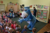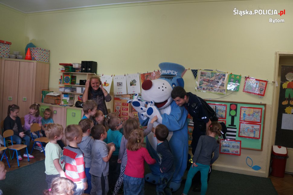Tym razem Sznupek - maskotka śląskiej policji odwiedził najmłodszych w przedszkolach przy ulicy Wrocławskiej i Pułaskiego. Spotkania połączone były z elementami edukacji dotyczącej bezpieczeństwa dzieci oraz zawodu policjanta.