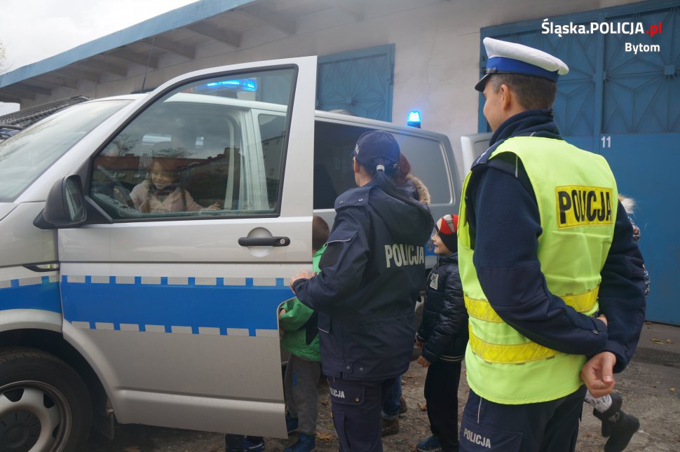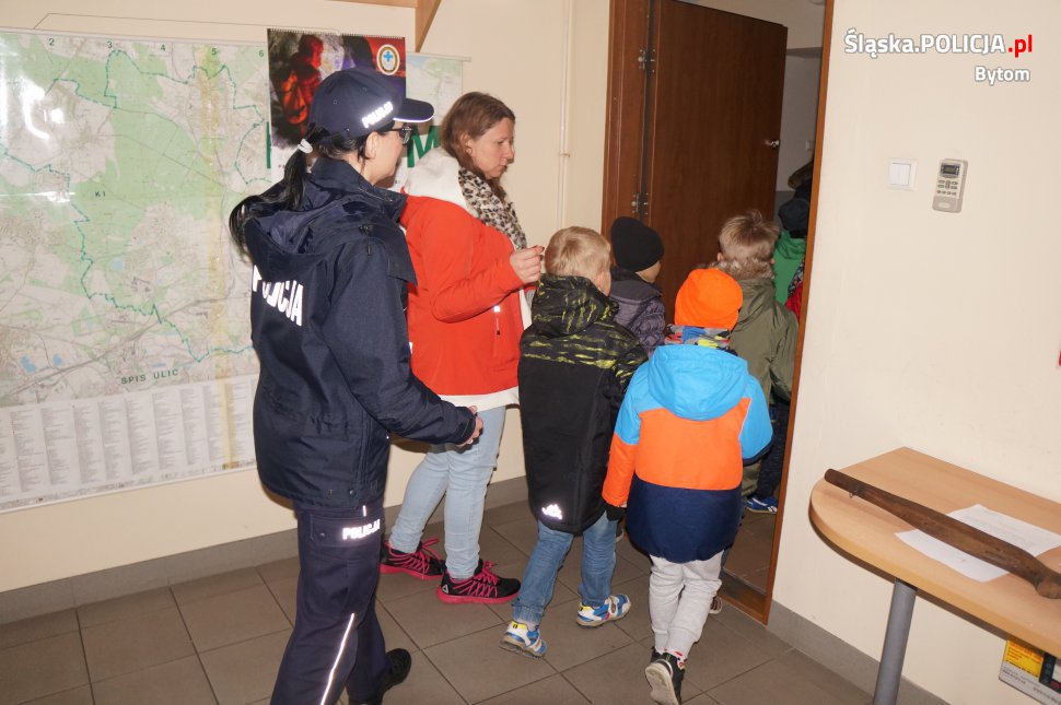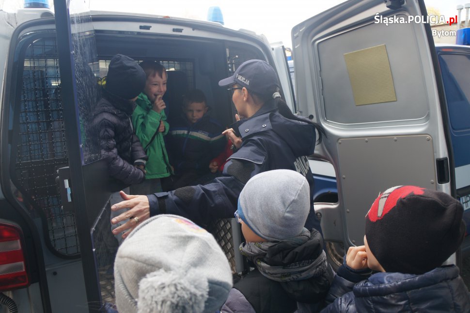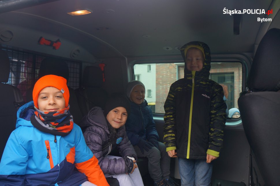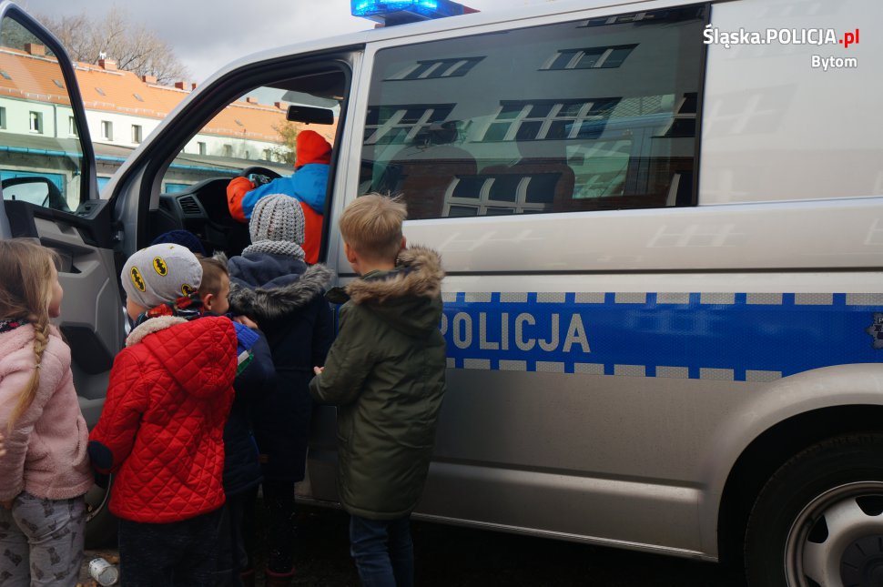 Zwykle policjanci goszczą w bytomskich szkołach. Tym razem jednak mali goście z SP nr 5 odwiedzili mundurowych w ich siedzibie. Jak każde spotkanie, również i to było okazją do przekazania maluchom podstawowych porad na temat bezpiecznych zachowań w domu i na drodze. Dzieci zobaczyły sprzęt i wyposażenie policyjne oraz dowiedziały się, w jaki sposób zabezpiecza się ślady. Najmłodszym najbardziej podobały się radiowóz i motocykl wykorzystywane w codziennej służbie przez policjantów z drogówki. Każdy mógł włączyć sygnały dźwiękowe i usiąść za kierownicą.