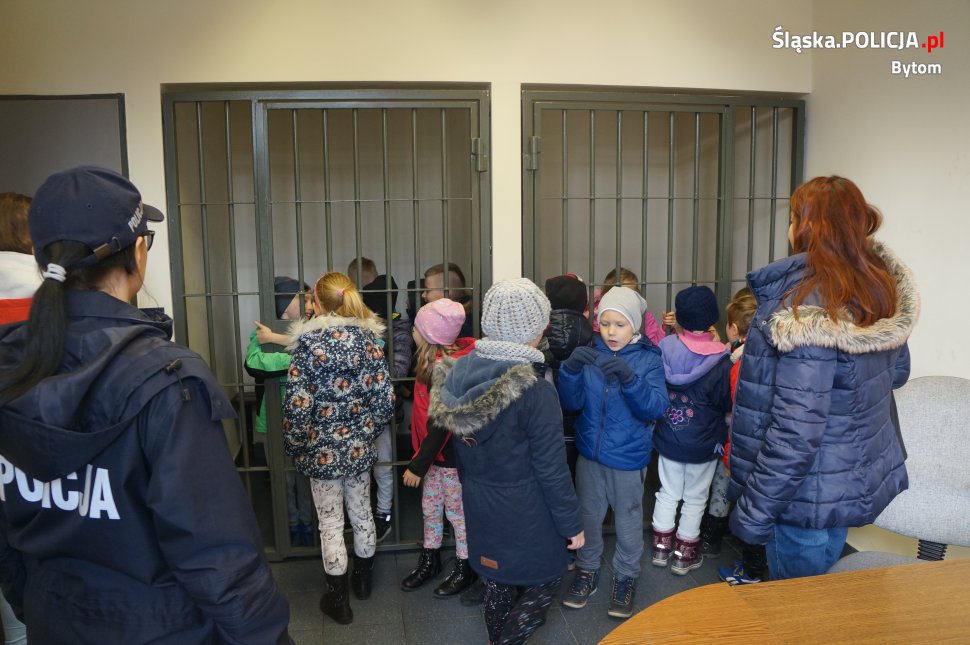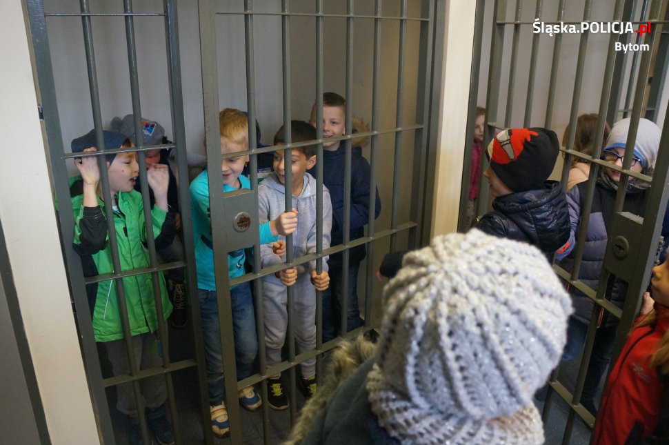 Stróże prawa z bytomskiej komendy gościli dzisiaj pierwszoklasistów ze SP nr 5. Podczas spotkania, mundurowi pokazali policyjne wyposażenie i oprowadzili ich po komendzie. Uczniowie mieli okazję przyjrzeć się z bliska pracy policjantów.