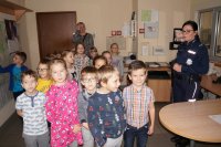 Dzisiaj rano kolejna grupa gości z SP nr 5 odwiedziła mundurowych w ich siedzibie. Podczas spotkania maluchom przekazano podstawowe porady na temat bezpiecznych zachowań w domu i na drodze. Dzieci zobaczyły sprzęt i wyposażenie policyjne oraz dowiedziały się, w jaki sposób zabezpiecza się ślady. Wszyscy zrobili sobie odcisk swoich linii papilarnych. Najmłodszym najbardziej podobał się radiowóz wykorzystywany w codziennej służbie przez policjantów. Każdy mógł włączyć sygnały dźwiękowe i usiąść za kierownicą.