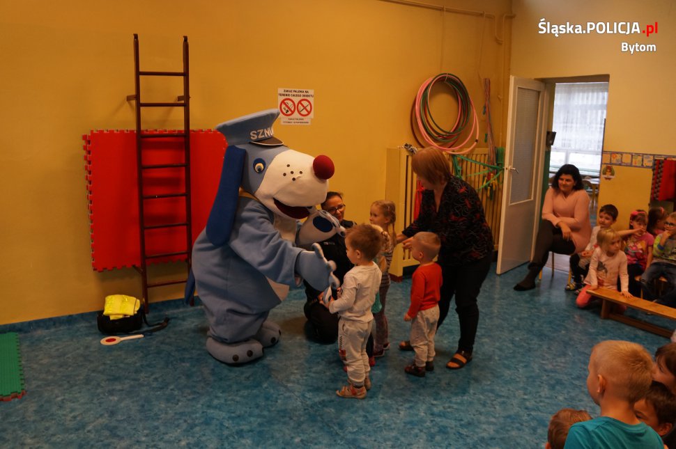 Policjanci z komendy odwiedzili dzieci w przedszkolu przy ulicy Arki Bożka. Towarzyszyła im maskotka śląskiej policji – pies „Sznupek".W trakcie spotkania mundurowi przeprowadzili prelekcję z zakresu bezpiecznego poruszania się po drodze, a także zachowania się w trudnych sytuacjach. Najmłodszym przypomniano o konieczności zapinania pasów w foteliku samochodowym, jak również o zachowaniu zasad ostrożności w kontaktach z obcymi i zwierzętami. Przedszkolacy z dużym zaangażowaniem uczestniczyli w prelekcji. Chętnie odpowiadali na pytania, a na zakończenie pozowali do wspólnych zdjęć.