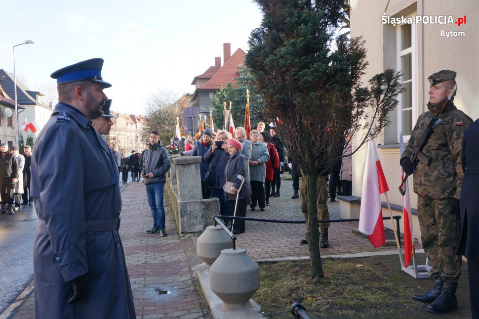 Dzisiaj w Bytomiu odbyły się uroczystości z okazji Narodowego Święta Niepodległości. Rozpoczęcie miało miejsce pod tablicą "Solidarności" przy ul. Pułaskiego, a główna ceremonia pod pomnikiem "Wolności" przy ul. Piłsudskiego. Wśród oficjalnych delegacji kwiaty złożył również Komendant Miejski Policji w Bytomiu, inspektor Karol Fajer.