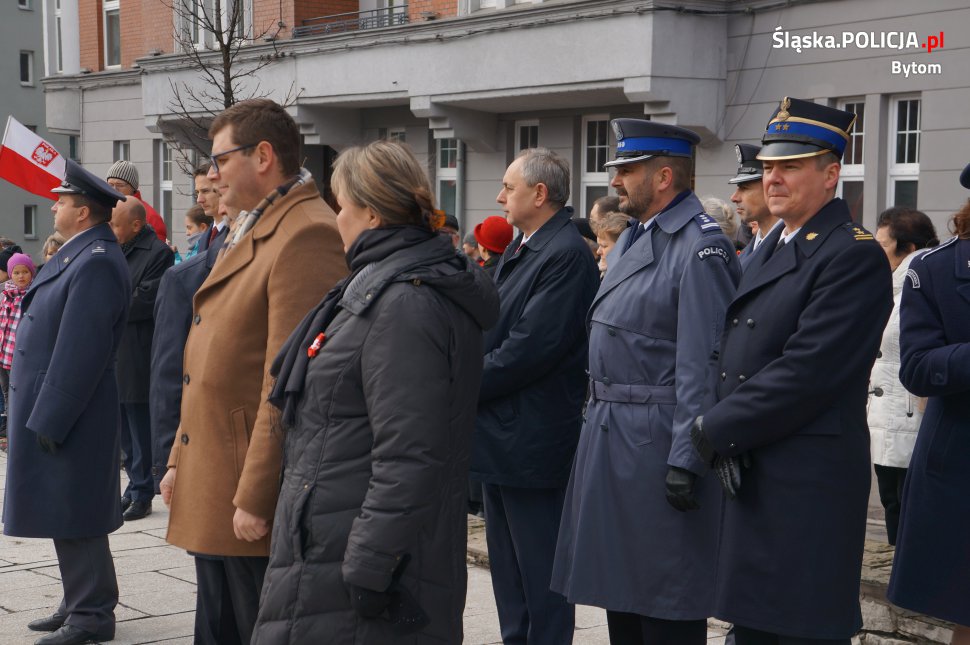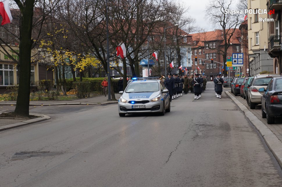 Główne uroczystości z okazji Narodowego Święta Niepodległości w naszym mieście, zorganizowano przed pomnikiem "Wolności" przy ulicy Piłsudskiego. Poprzedziła je msza święta w kościele p.w. Najświętszego Serca Pana Jezusa przy ulicy Pułaskiego. Odprawiona została w intencji ojczyzny oraz za wszystkich, którzy oddali życie w jej obronie. Przed mszą przedstawiciele władz miasta, bytomskich środowisk oraz miejscowego garnizonu Policji złożyli kwiaty przy tablicy "Solidarności" mieszczącej się obok kościoła. Następnie oficjalne delegacje oraz mieszkańcy miasta przeszli pod pomnik "Wolności", gdzie odbyła się oficjalna część obchodów Święta Niepodległości. Nad bezpieczeństwem uroczystości czuwali bytomscy policjanci.