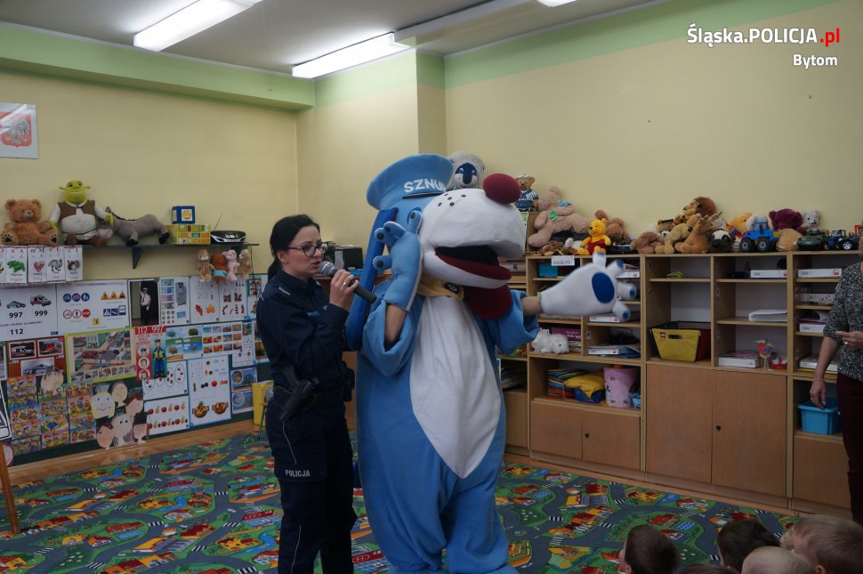 Policjanci z komendy odwiedzili dzieci w przedszkolu przy ulicy Szymały. Towarzyszyła im maskotka śląskiej policji – pies „Sznupek".W trakcie spotkania mundurowi przeprowadzili prelekcję z zakresu bezpiecznego poruszania się po drodze, a także zachowania się w trudnych sytuacjach. Najmłodszym przypomniano o konieczności zapinania pasów w foteliku samochodowym, jak również o zachowaniu zasad ostrożności w kontaktach z obcymi i zwierzętami. Przedszkolacy z dużym zaangażowaniem uczestniczyli w prelekcji. Chętnie odpowiadali na pytania, a na zakończenie pozowali do wspólnych zdjęć.