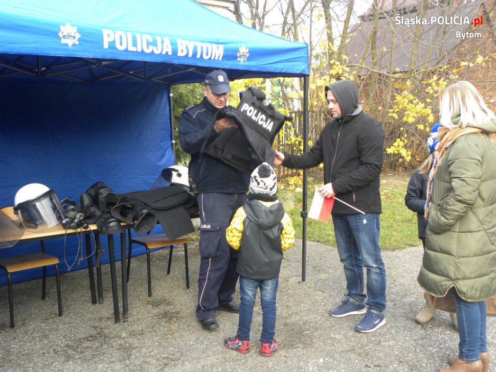 W miniony weekend na placu przyszkolnym byłego Gimnazjum nr 13 odbył się festy z okazji Narodowego Święta Niepodległości. Udział w nim wzięli również policjanci z Komisariatu w Bytomiu – Miechowicach. Celem wydarzenia było przybliżenie lokalnej społeczności aplikacji „Krajowa Mapa Zagrożeń Bezpieczeństwa” oraz „Moja Komenda”. Z najmłodszymi rozmawiano na temat bezpieczeństwa.