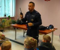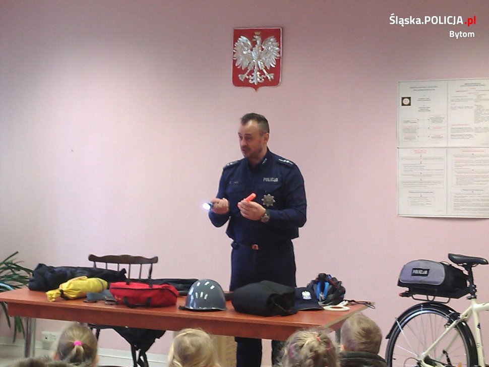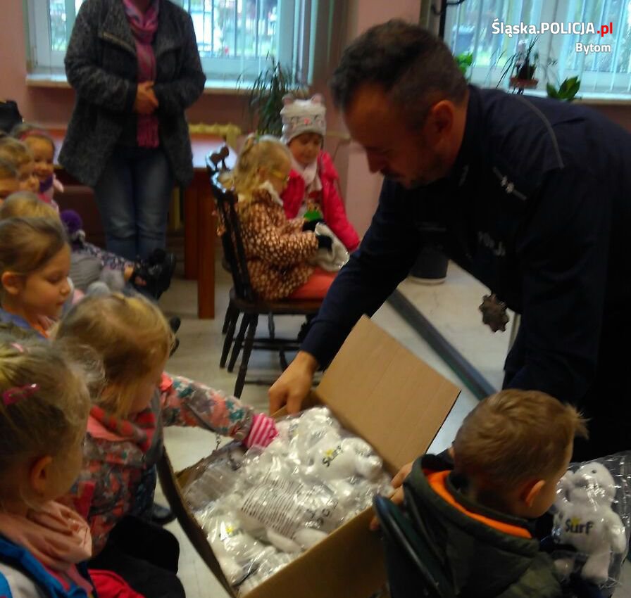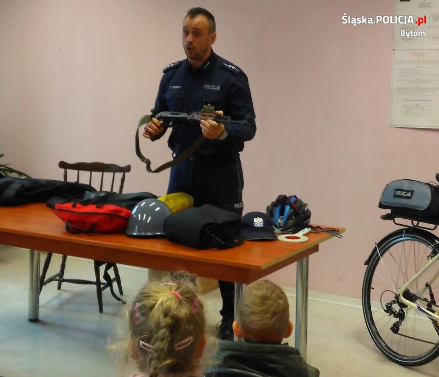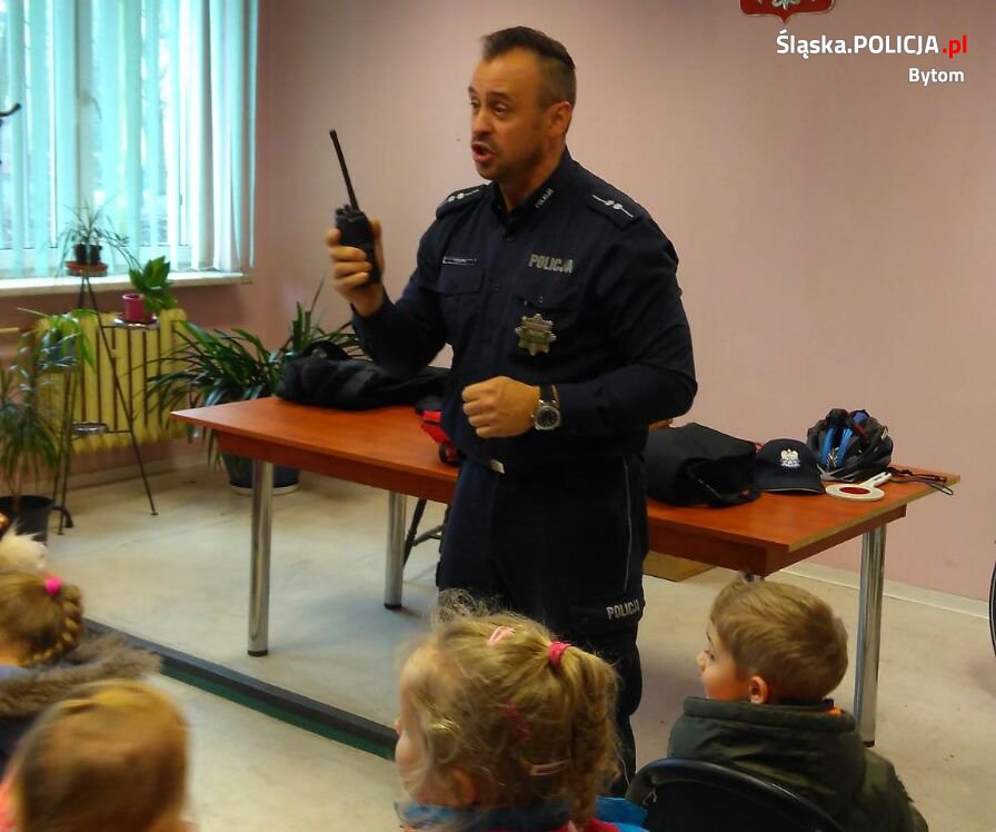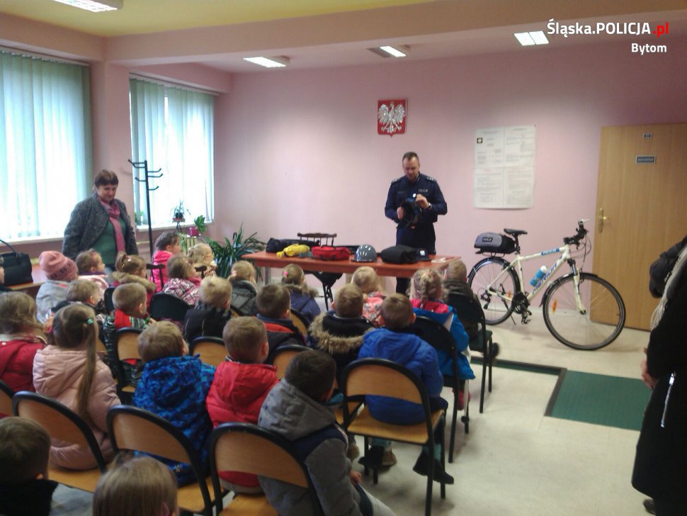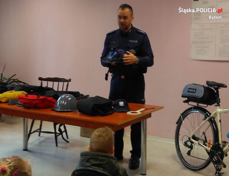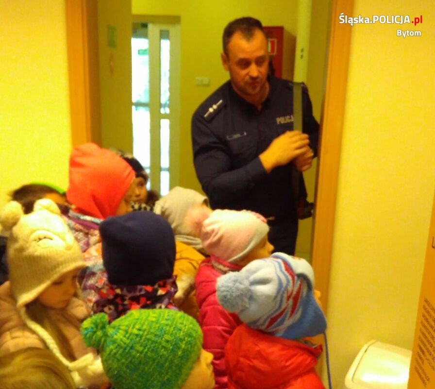 Dzielnicowi z komisariatu w Miechowicach gościli najmłodszych z przedszkola przy ul. Czecha. W czasie spotkania w ramach kampanii edukacyjnej „Kręci mnie bezpieczeństwo” aspirant Piotr Schoppa uczył dzieci, jak unikać zagrożeń i bezpiecznie poruszać się po drodze. Poruszył temat bezpieczeństwa dzieci podczas zabaw na podwórku, przejazdu samochodem i kontaktach z obcymi. Najmłodszym przypomniano o konieczności zakładania kasku podczas jazdy na nartach lub rowerze, zapinania pasów w foteliku samochodowym, jak również o zachowaniu zasad ostrożności w kontaktach z obcymi i zwierzętami. Najmłodsi z dużym zaangażowaniem uczestniczyli w spotkaniu i chętnie zadawali oraz odpowiadali na pytania. Mundurowy pokazał dzieciom policyjne wyposażenie oraz najmłodsi mogli zwiedzić komisariat. Na zakończenie każde z dzieci otrzymało pamiątkowego pluszaka.