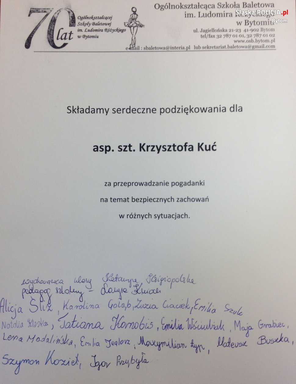 Dzielnicowi w szkole baletowej o bezpiecznych feriach