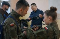 Policyjna wystawa podczas rekonstrukcji walk ze stycznia 1945 roku w Miechowicach