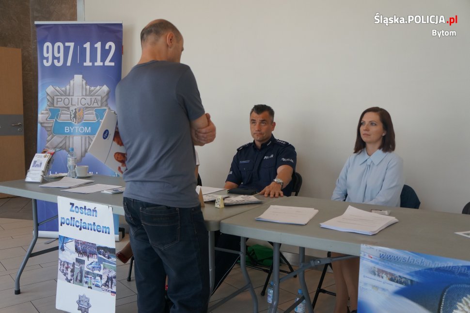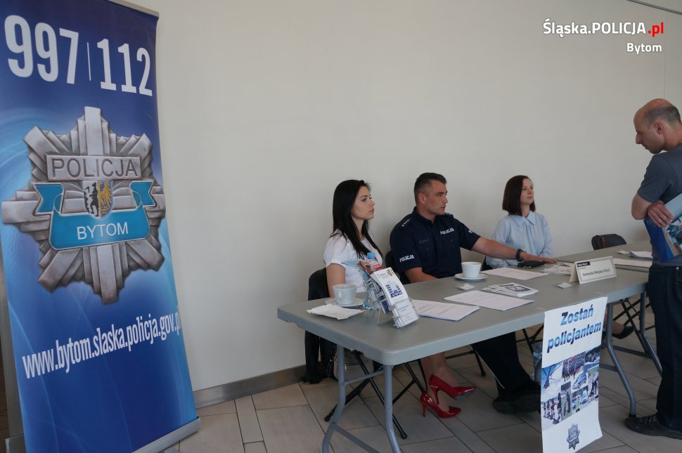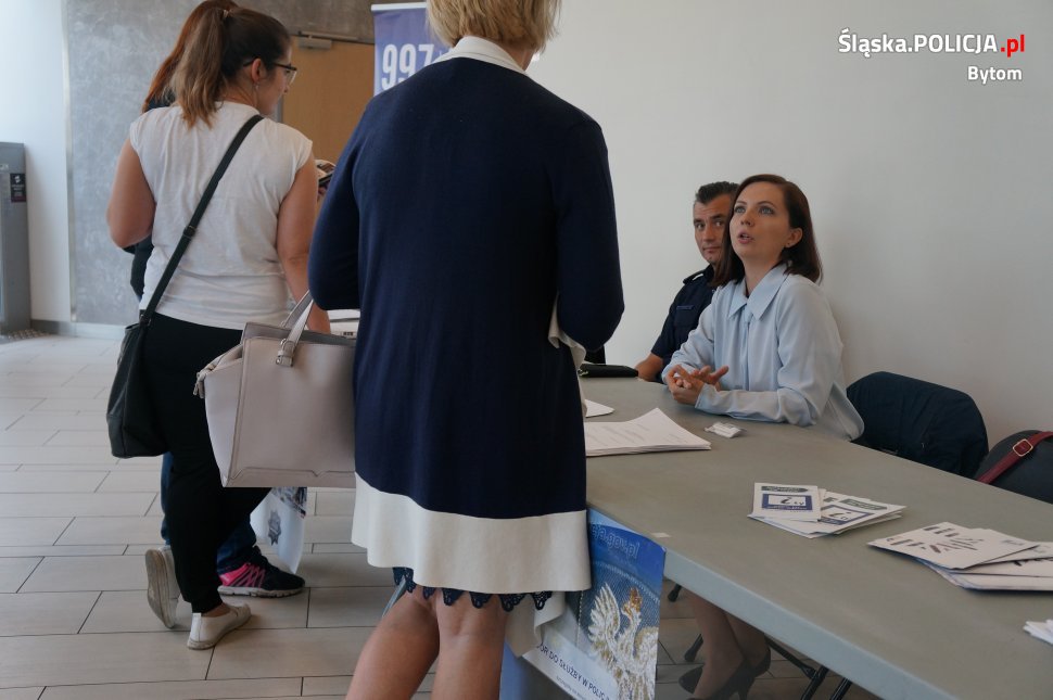 Wczoraj w jednym z bytomskich centrów handlowych odbyły się targi pracy. Ich organizatorem był Powiatowy Urząd Pracy w Bytomiu. W targach uczestniczyli również policjanci z bytomskiej komendy. Przygotowali oni stoisko informacyjne dla osób zainteresowanych wstąpieniem w szeregi Policji. Cieszyło się ono dużym zainteresowaniem wśród osób odwiedzających targi. Mundurowi odpowiadali na szereg pytań oraz rozdawali ulotki z informacjami dla kandydatów do służby. Odwiedzającymi byli głównie młodzi ludzie, dla których wstąpienie do formacji mundurowej byłoby początkiem zawodowej kariery. Osobom zainteresowanym wstąpieniem do służby udzielano niezbędnych informacji oraz omówiono proces rekrutacji. Była to także doskonała okazja, aby porozmawiać z mundurowymi o charakterze ich pracy.
