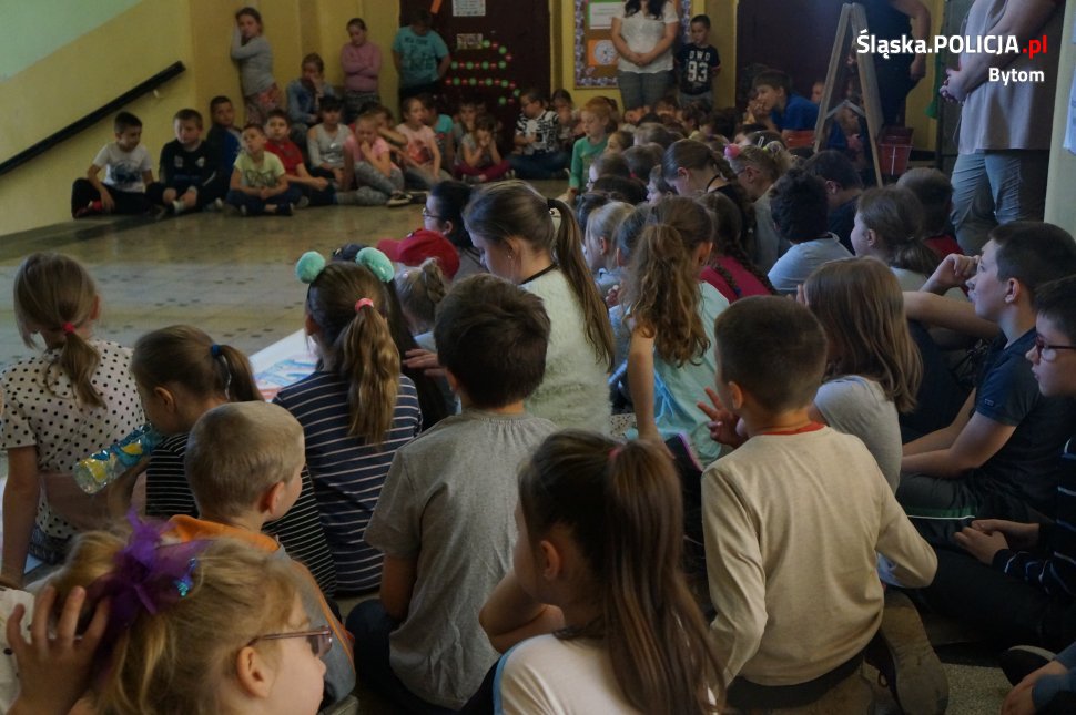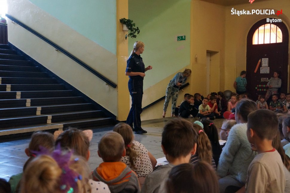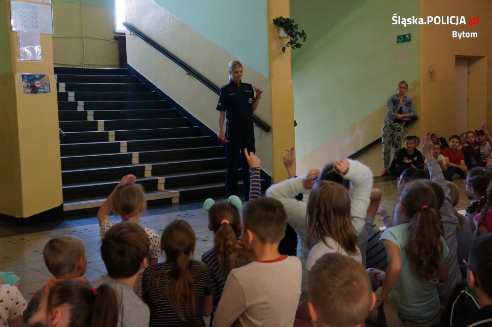 Policjanci z bytomskiej komendy spotkali się z uczniami podstawówki. Stróże prawa odwiedzili szkołę przy ul. Królowej Jadwigi. Mundurowi podczas prowadzonej prelekcji przekazali uczniom podstawowe informacje dotyczące ich bezpieczeństwa.