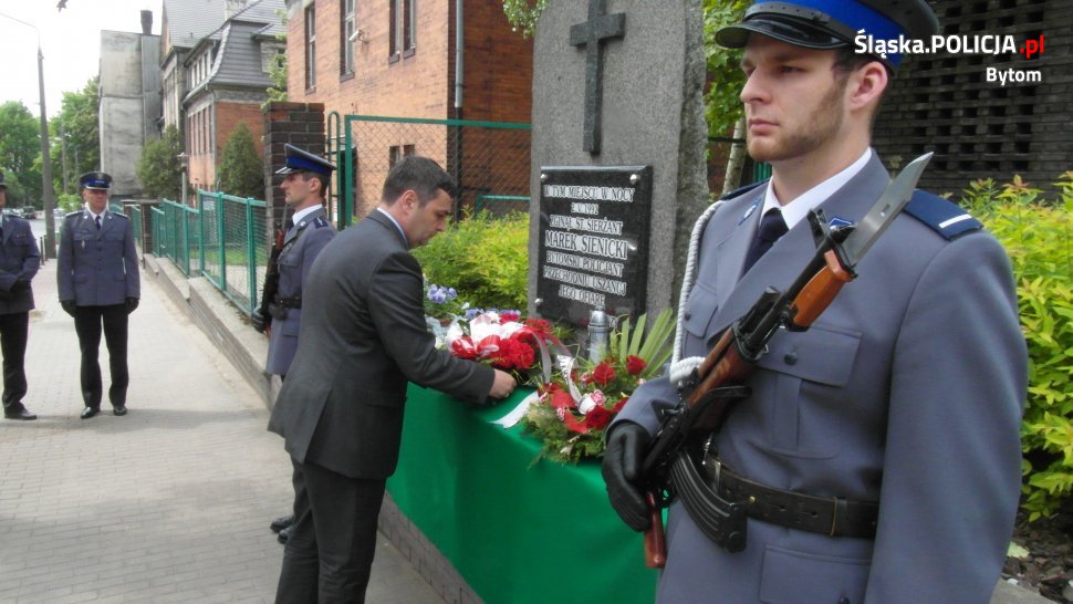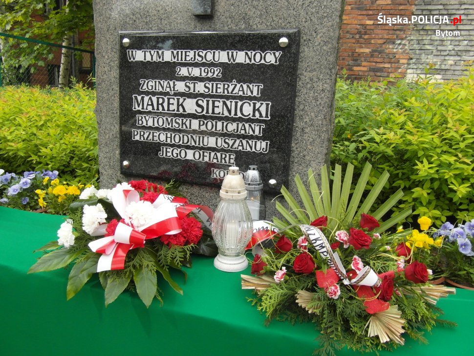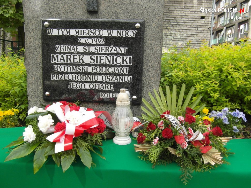 Dzisiaj mija 26. rocznica śmierci starszego sierżanta Marka Sienickiego. W miejscu, w którym zginął bytomski policjant wystawiono wartę honorową. Jak co roku kwiaty złożyli przedstawiciele samorządu oraz Pierwszy Zastępca Komendanta Miejskiego Policji w Bytomiu podinsp. Dariusz Dziurka.