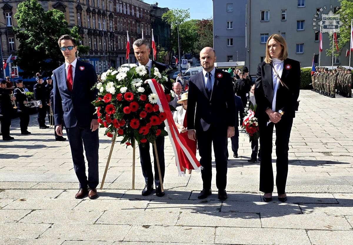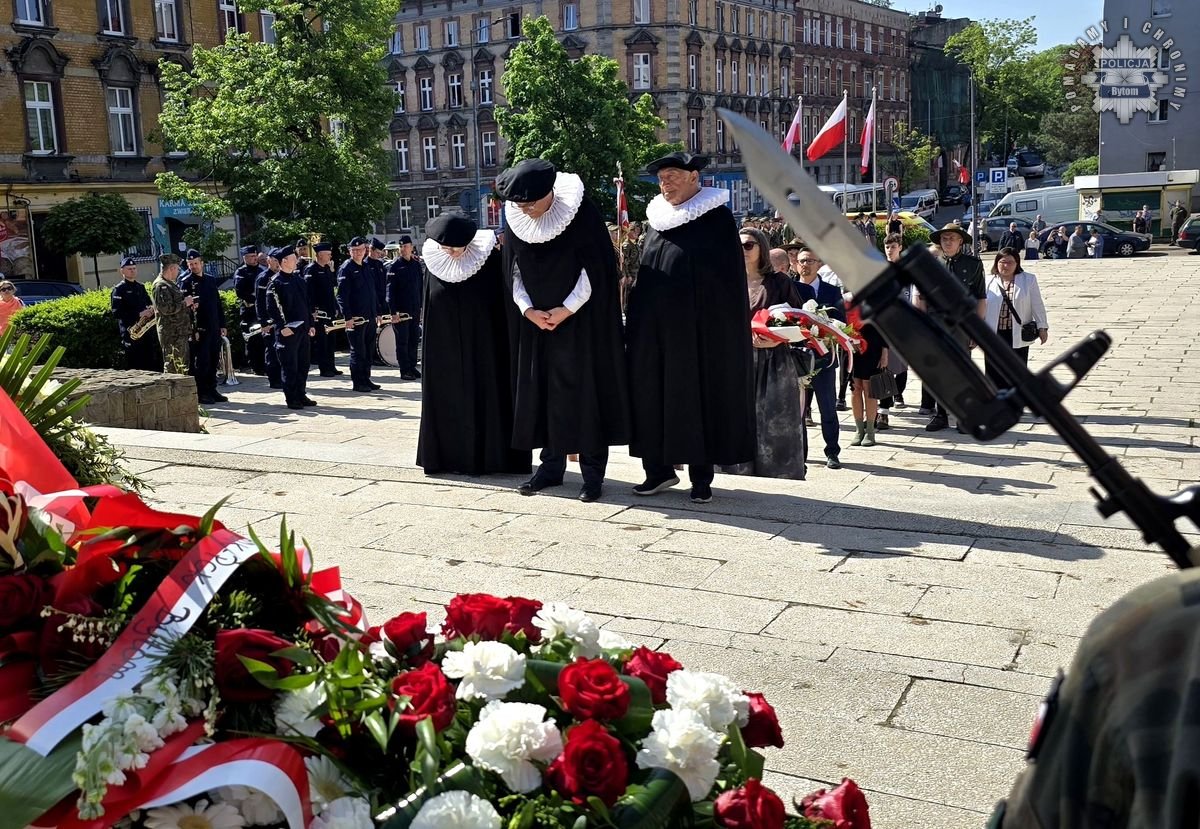 Bytomscy stróże prawa czuwali nad bezpieczeństwem obchodów rocznicy uchwalenia Konstytucji 3 Maja. Przedstawiciele władz miasta oraz służb mundurowych złożyli kwiaty pod pomnikiem „Wolności” przy ul. Piłsudskiego. Uczestnicy obchodów wzięli także udział we mszy świętej w intencji Ojczyzny.