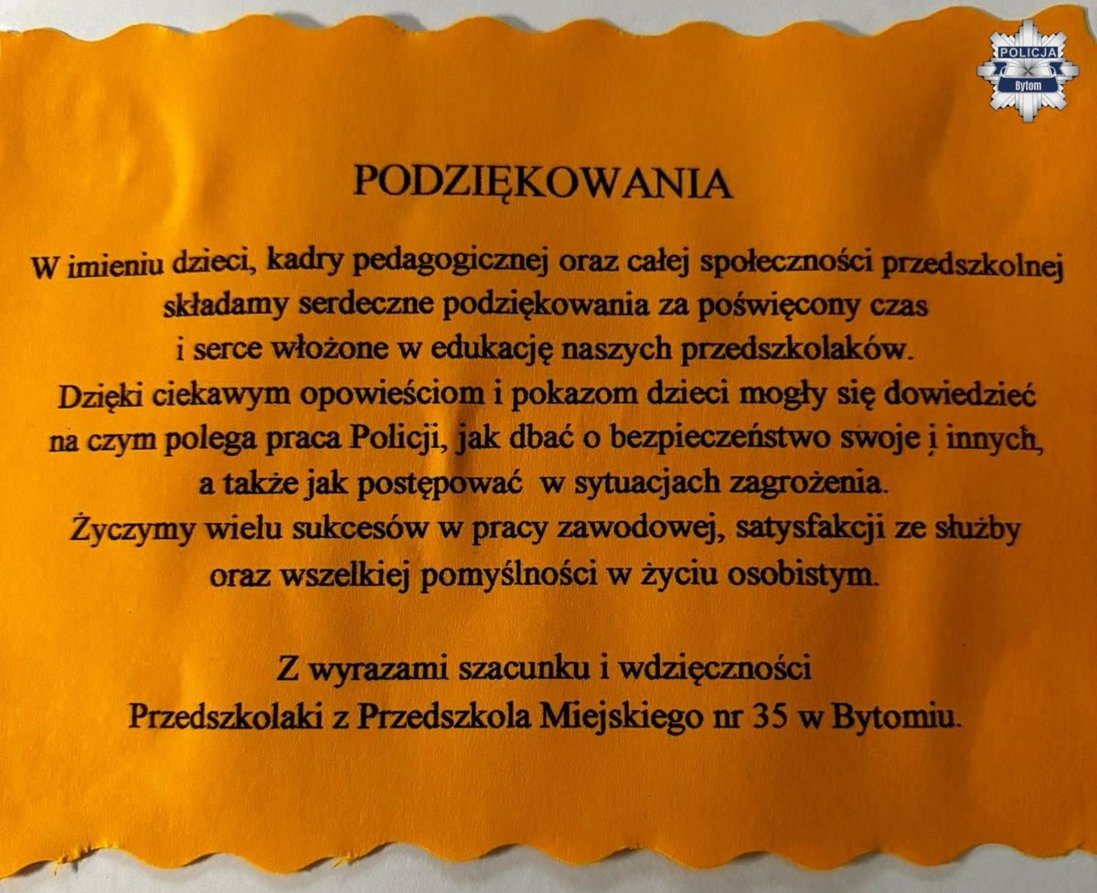 Od wielu lat bytomscy policjanci odwiedzają szkoły i przedszkola, aby uświadamiać dzieci i młodzież w kwestiach dotyczących bezpieczeństwa. Jednak tym razem to przedszkolaki z Miejskiego Przedszkola nr 35 w Bytomiu odwiedziły policjantów z komisariatu czwartego.