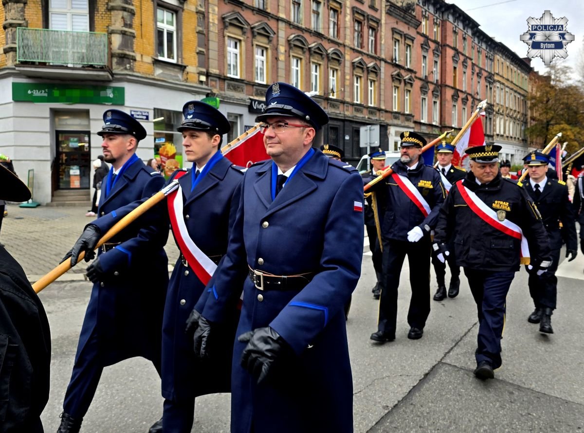 Dzisiaj w Bytomiu obchodzone były uroczystości, które upamiętniają rocznicę odzyskania przez Polskę niepodległości w 1918 roku i powrót naszego kraju na mapę Europy po 123 latach niewoli. Tradycyjnie obchody rozpoczęły się złożeniem kwiatów pod tablicą „Solidarności” przy ulicy Pułaskiego, a zakończyły przy pomniku Wolności na ulicy Piłsudskiego. W wydarzeniu wziął udział Komendant Miejski Policji w Bytomiu.
