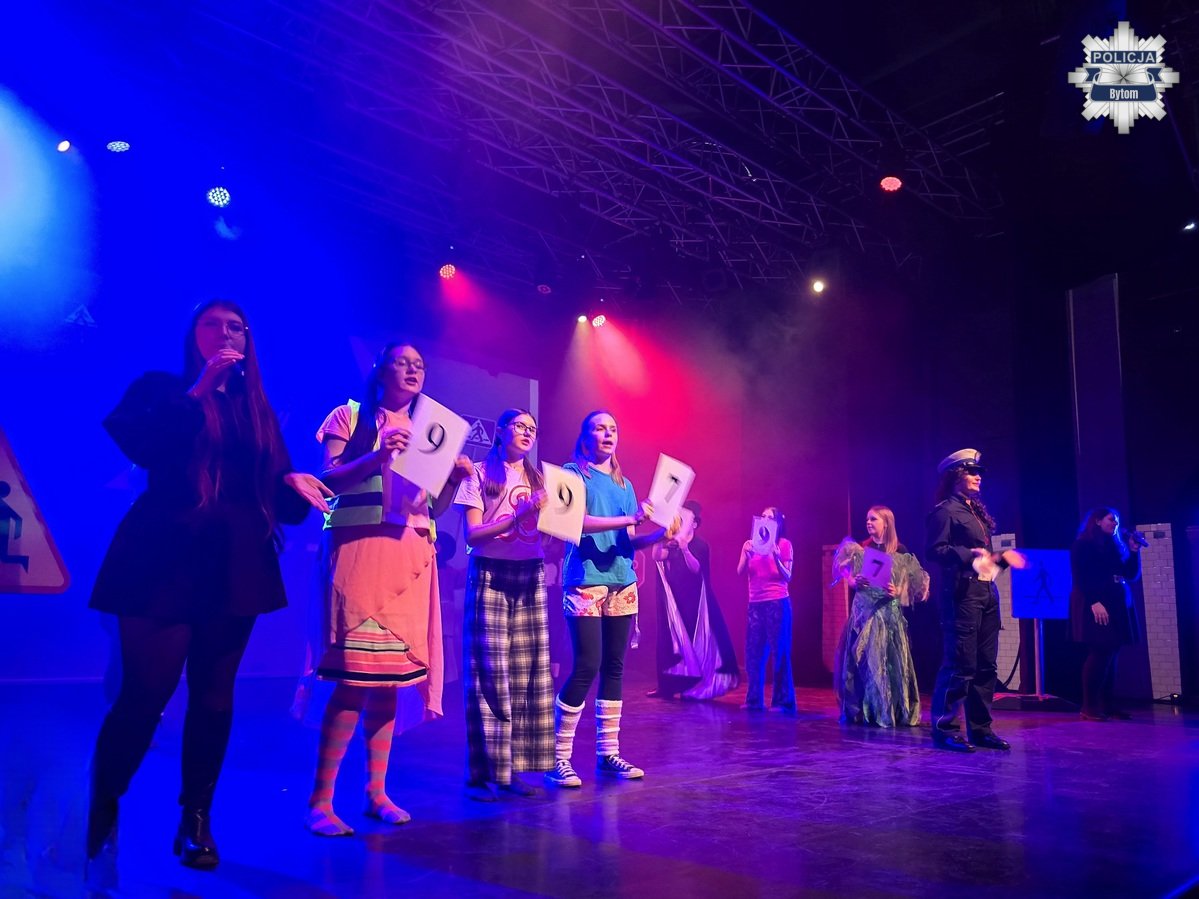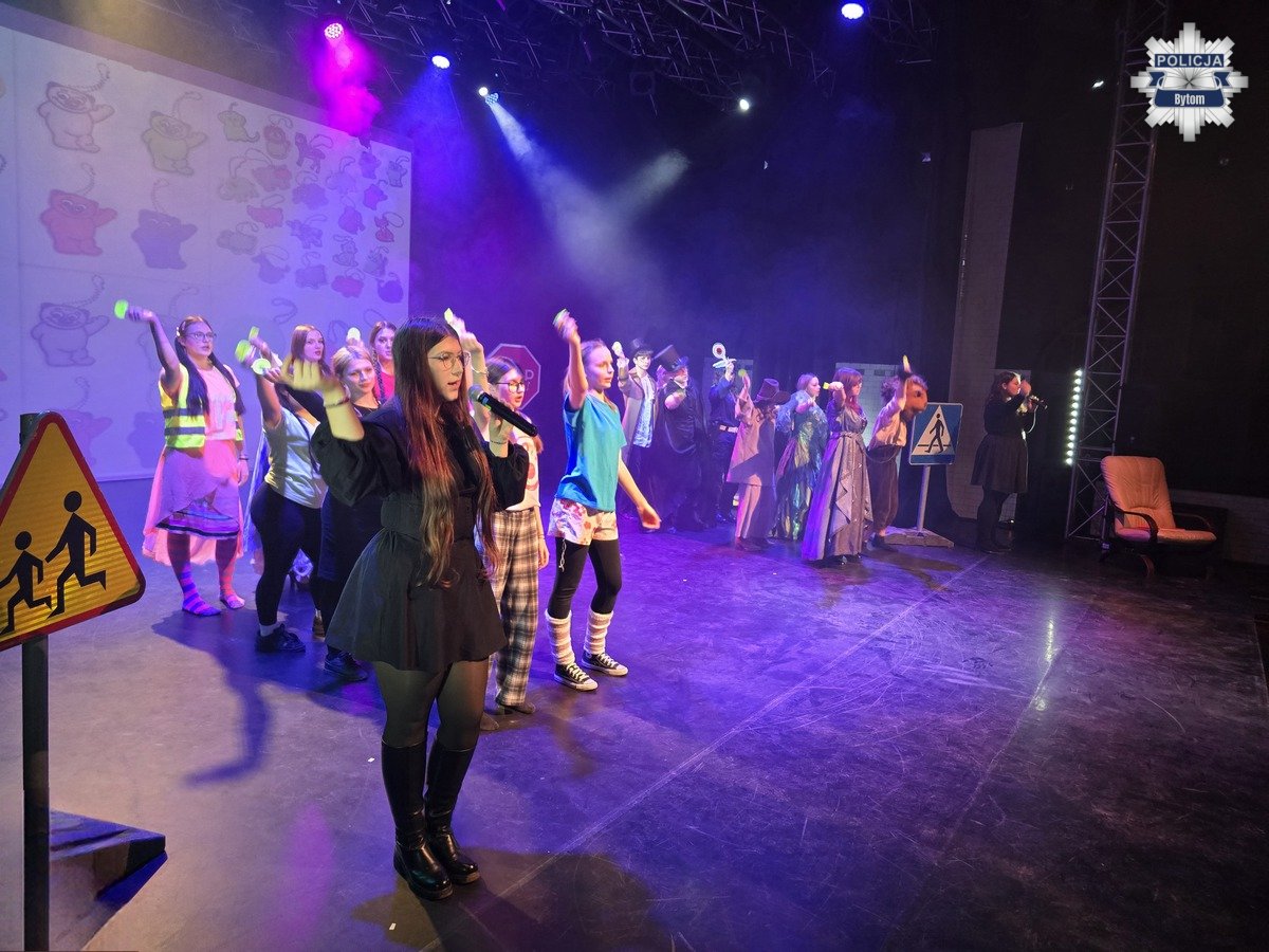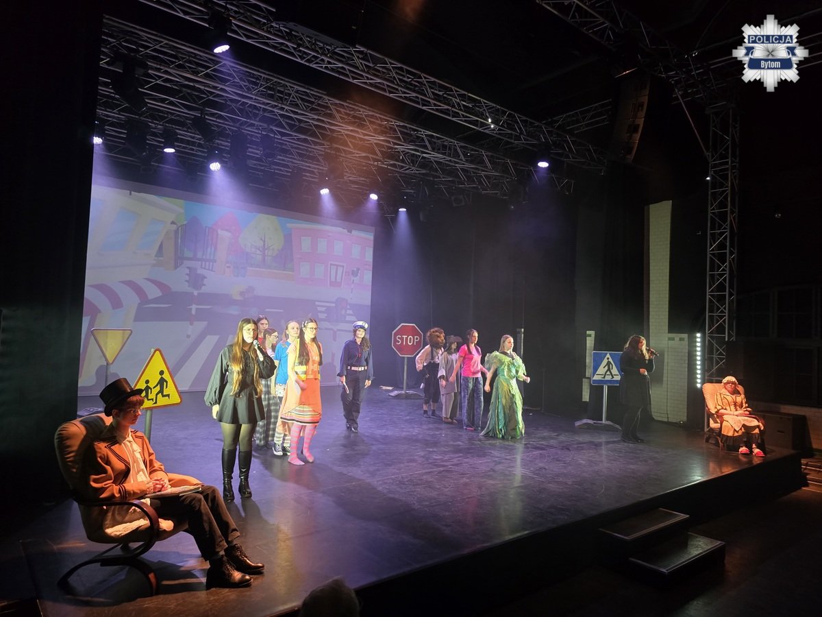 Założeniem przedstawienia było przekazanie najmłodszym w jak najbardziej przystępny dla nich sposób, zasad bezpiecznego zachowania podczas drogi do szkoły i powrotu do domu. W ciągu trzech dni młodzież wystawiła, aż osiem przedstawień dla uczniów klas pierwszych bytomskich szkół podstawowych. Przed każdym spektaklem policjantka wraz z maskotką śląskiej Policji „Sznupkiem” wprowadzała dzieci w bajkowy świat przedstawienia, a po jego zakończeniu przypomniała uczniom reguły, którymi powinni się kierować, aby bezpiecznie poruszać się po drodze. Maluchom bardzo podobała się wystawiana sztuka, a artyści otrzymywali gromkie brawa. Po zakończeniu każdego przedstawienia rozdawano dzieciom odblaskowe opaski przygotowane przez mundurowych.