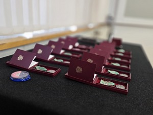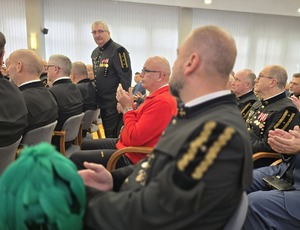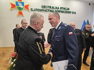 Obchody święta górniczego stanu przeniosły się do auli, gdzie przybyłych gości przywitał Prezes Zarządu Centralnej Stacji Ratownictwa Górniczego Mirosław Bagiński. Zanim jednak to się stało, minutą ciszy uczczono pamięć tych, którzy odeszli na wieczną szychtę. Pod koniec uroczystości wręczono odznaczenia resortowe oraz nadane przez CSRG. Młodszy inspektor Michał Sokołowski przekazał także życzenia w imieniu własnym, kierownictwa oraz wszystkich funkcjonariuszy i pracowników cywilnych.