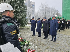 Pierwszy Zastępca Komendanta Miejskiego Policji w Bytomiu uczestniczył w uroczystościach „Ratowniczej Barbórki 2025”. Uroczystość Barbórkową zorganizowano w siedzibie Centralnej Stacji Ratownictwa Górniczego przy ulicy Chorzowskiej w Bytomiu. Młodszy inspektor Michał Sokołowski w imieniu wszystkich bytomskich policjantów oddał hołd pod pomnikiem Ku Czci Poległych na Służbie Ratowników Górniczych.