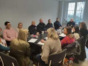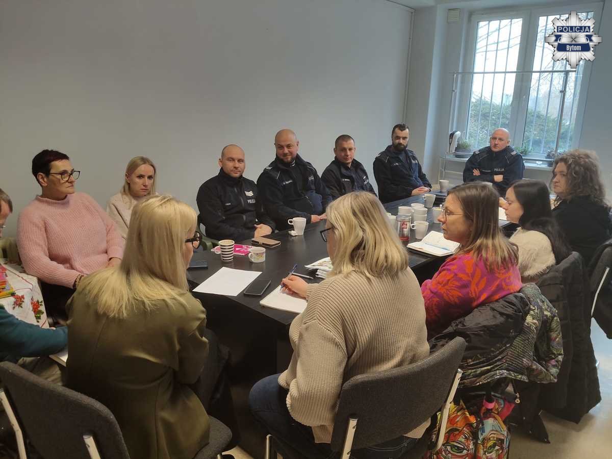 W dniu 2 lutego 2026 roku kierownik Rewiru Dzielnicowych Komisariatu Policji I w Bytomiu aspirant sztabowy Marcin Ciemka wraz z dzielnicowymi uczestniczyli w spotkaniu z kuratorami sądowymi, pracownikami Miejskiego Ośrodka Pomocy Rodzinie mieszczącego się w Miechowicach oraz pedagogami ze szkół podstawowych znajdujących się w rejonie Komisariatu Policji I w Bytomiu.