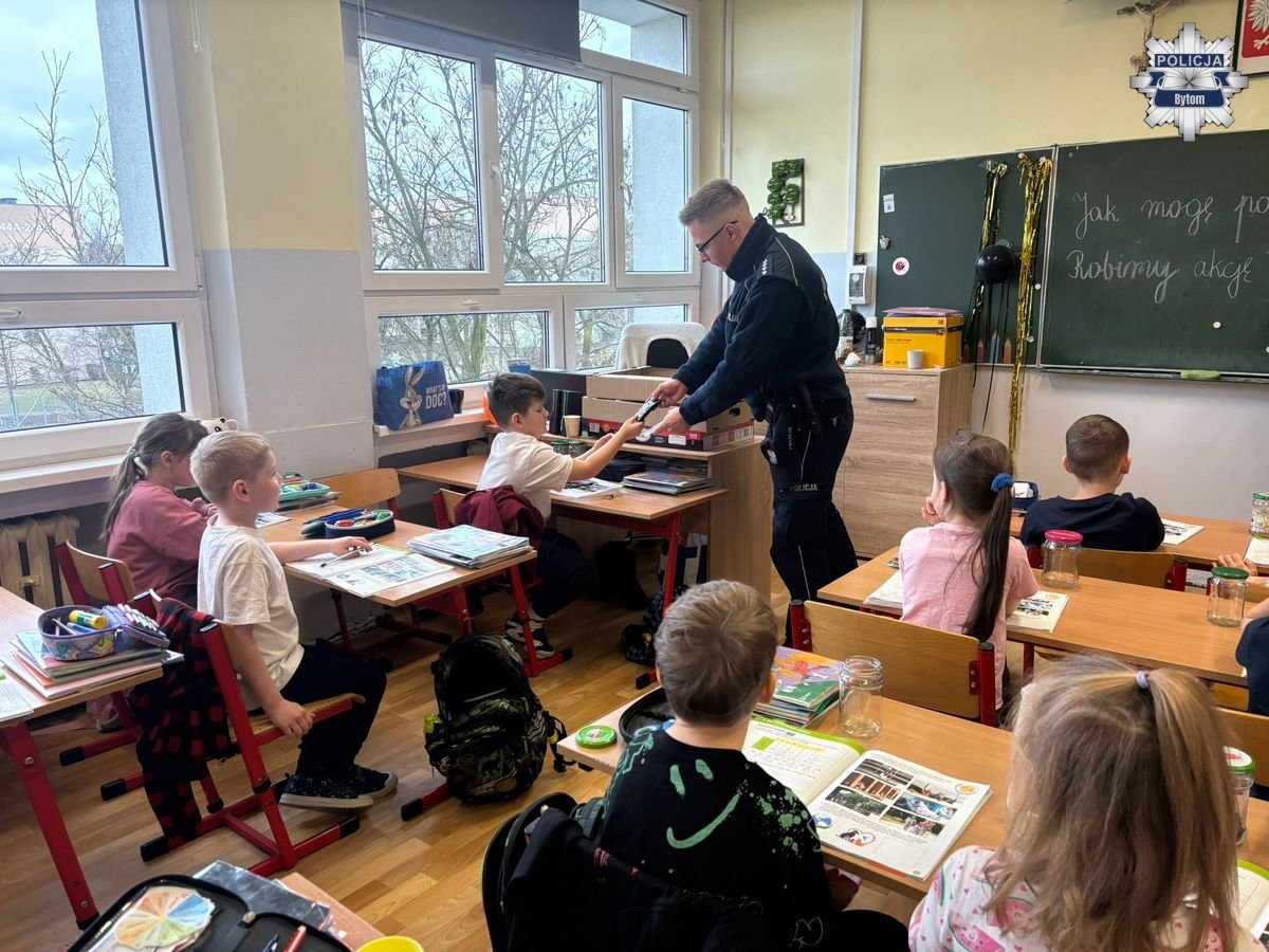 Dzielnicowi z KP V w Bytomiu udali się do szkoły podstawowej i do przedszkola mieszczących się przy ulicy Szymały w Bytomiu. Głównym tematem było bezpieczeństwo podczas zimowych ferii oraz bezpieczeństwo w ruchu drogowym. Dzieci aktywnie uczestniczyły w spotkaniach, stróże prawa odpowiadali na wile pytań, zaspokajając dziecięcą ciekawość. Spotkania były także doskonałą okazją do obejrzenia umundurowania oraz sprzętu w służbowego policjantów.